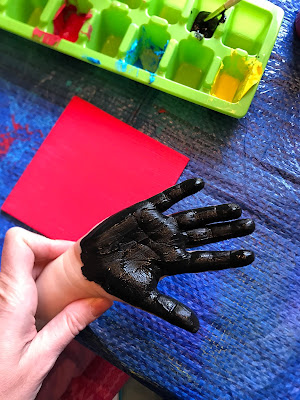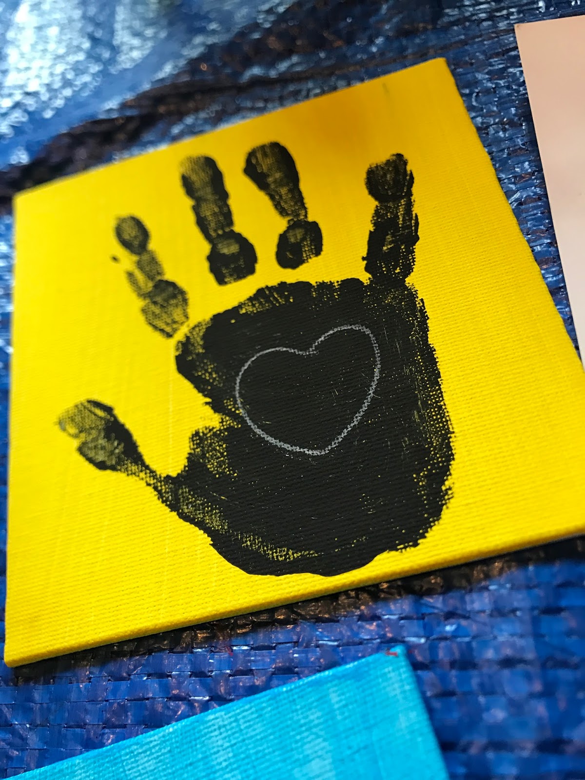 After our handprints dried, we traced a heart cookie cutter onto the palm of each hand.