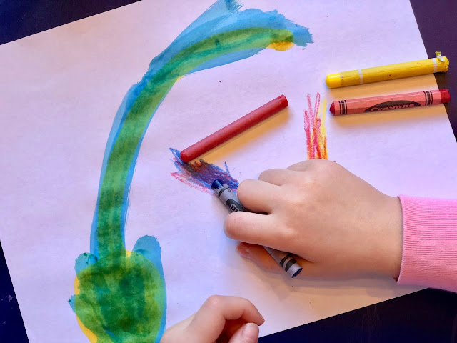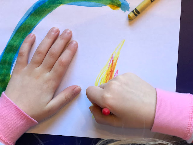 | We lost our piece of purple paper, so had to use a purple crayon in its place. |